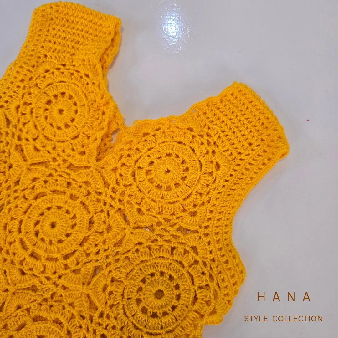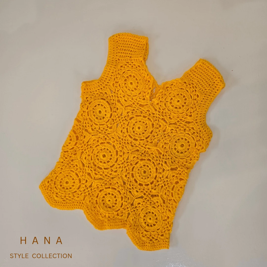 تاپ قلاب بافی زرد; جلوهای هنری با رنگ زرد شاد